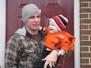 Brian has his first cold. :( He went to bed just fine. No signs of sickness. He played and ate normally all day. Around 11:15pm he woke up fussing and wouldn't go back to sleep unless someone was patting his back. That went on till about 1:15. I had already been asleep for an hour before he woke up so I was exhausted standing there over his crib patting away. Around 1:15am I tried to leave and just let him cry it out for a little while. I thought he might only cry for maybe 10 minutes but it was at least 45 minutes. Around 2am Dean went in there to calm him down. He rocked and patted him for a good 20 minutes in our bed. We laid him in bed with us for a half hour and then took him back to his crib. By 3am I think we were all sleeping again.